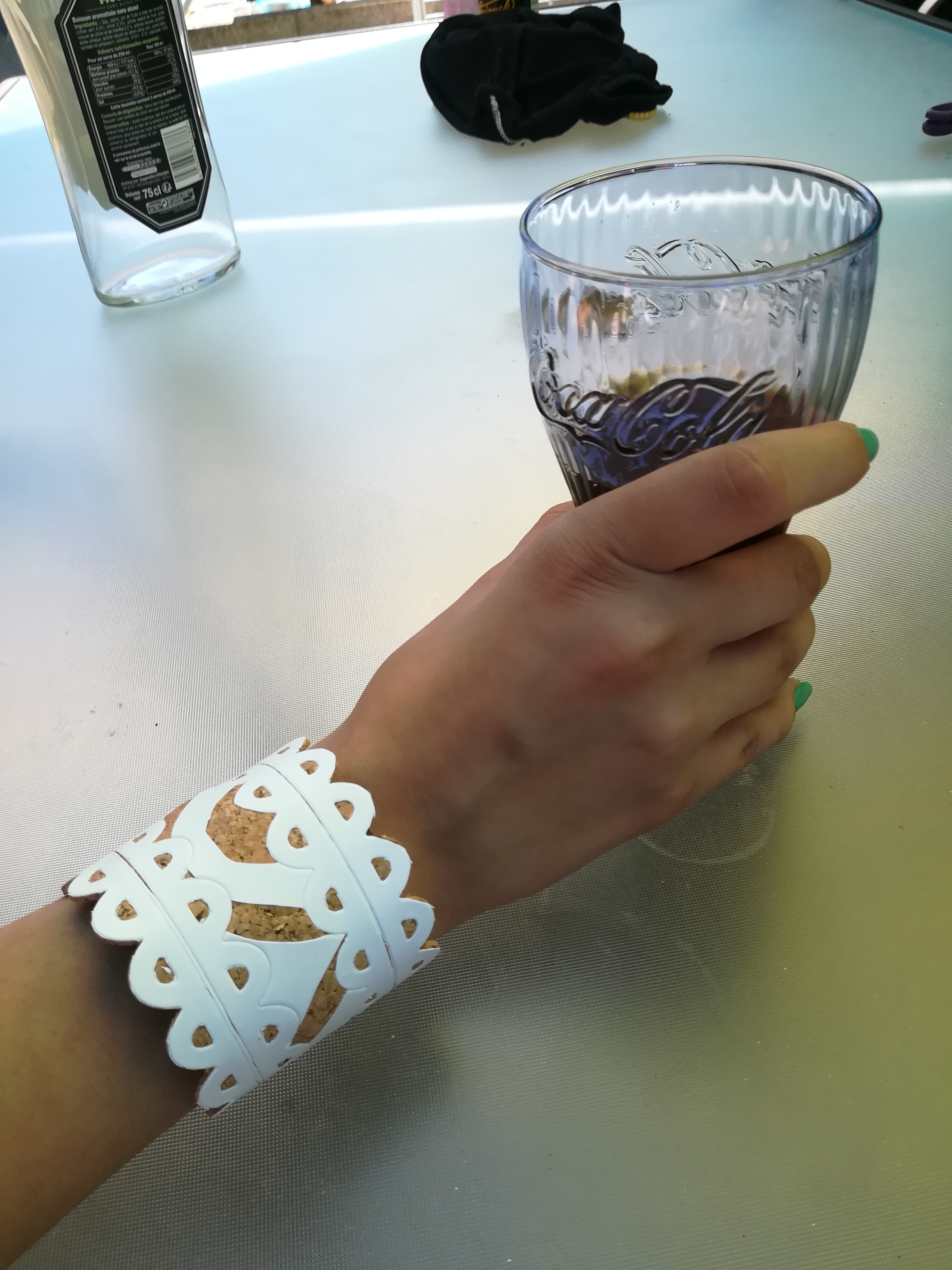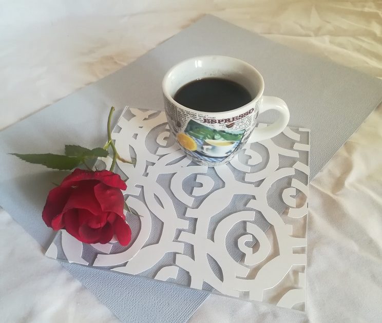 secoupe de tasse en dentelle technique sur plexy